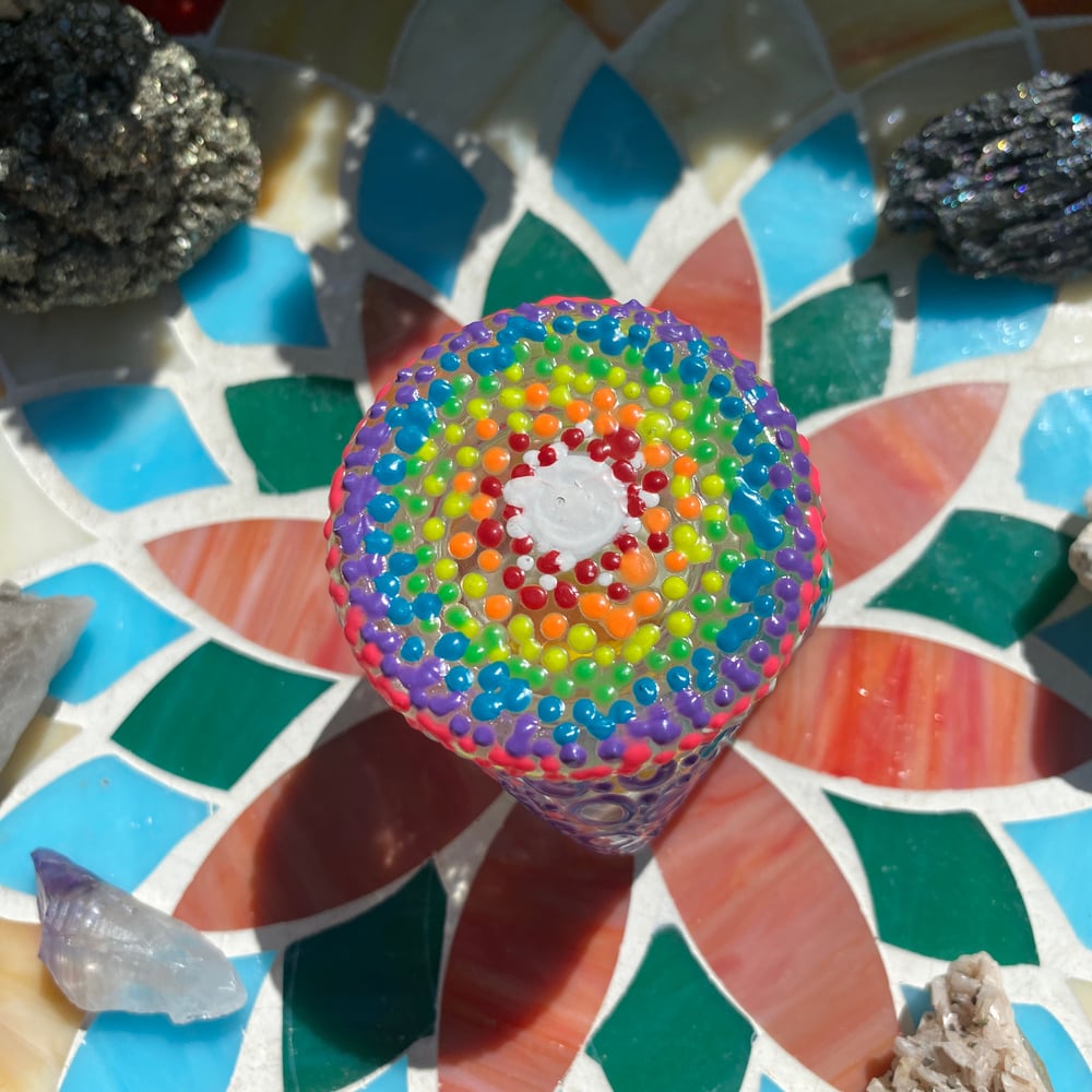 this small stash jar is designed with puffy paint, detailed with rainbow polka dots 🌈
