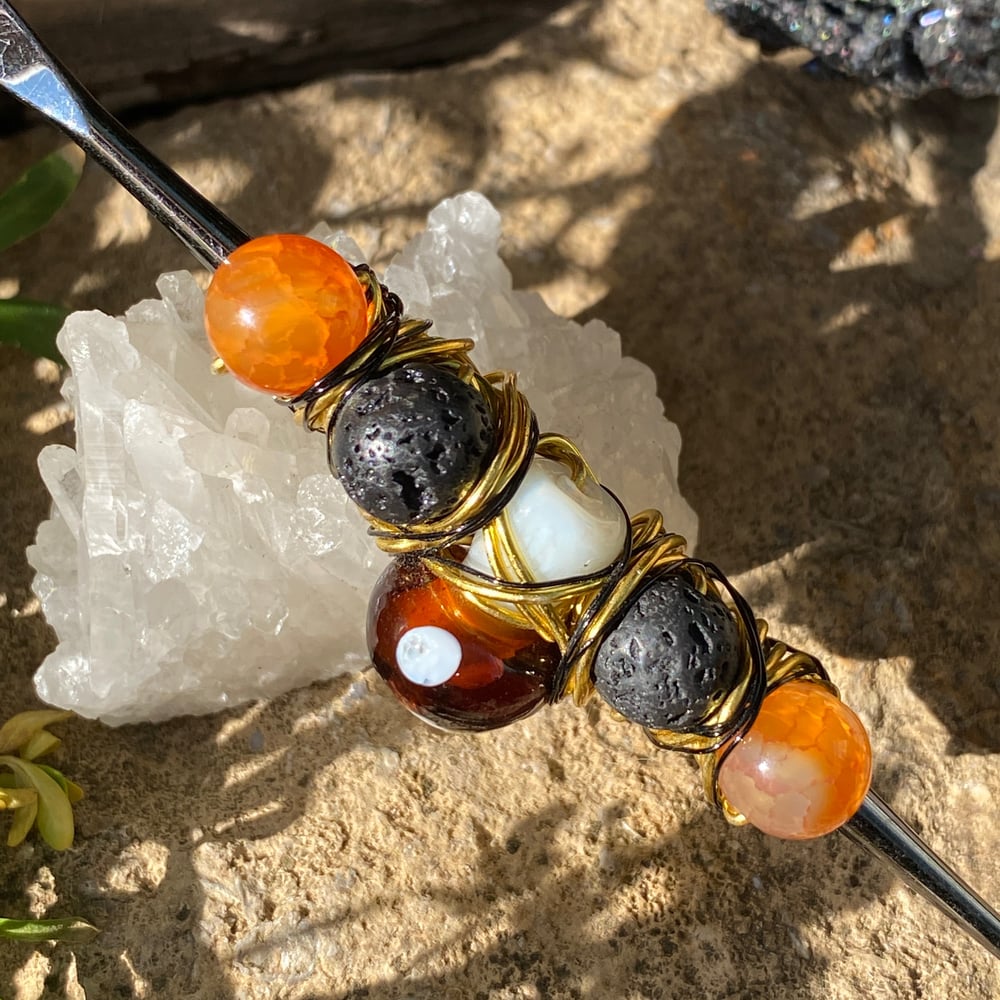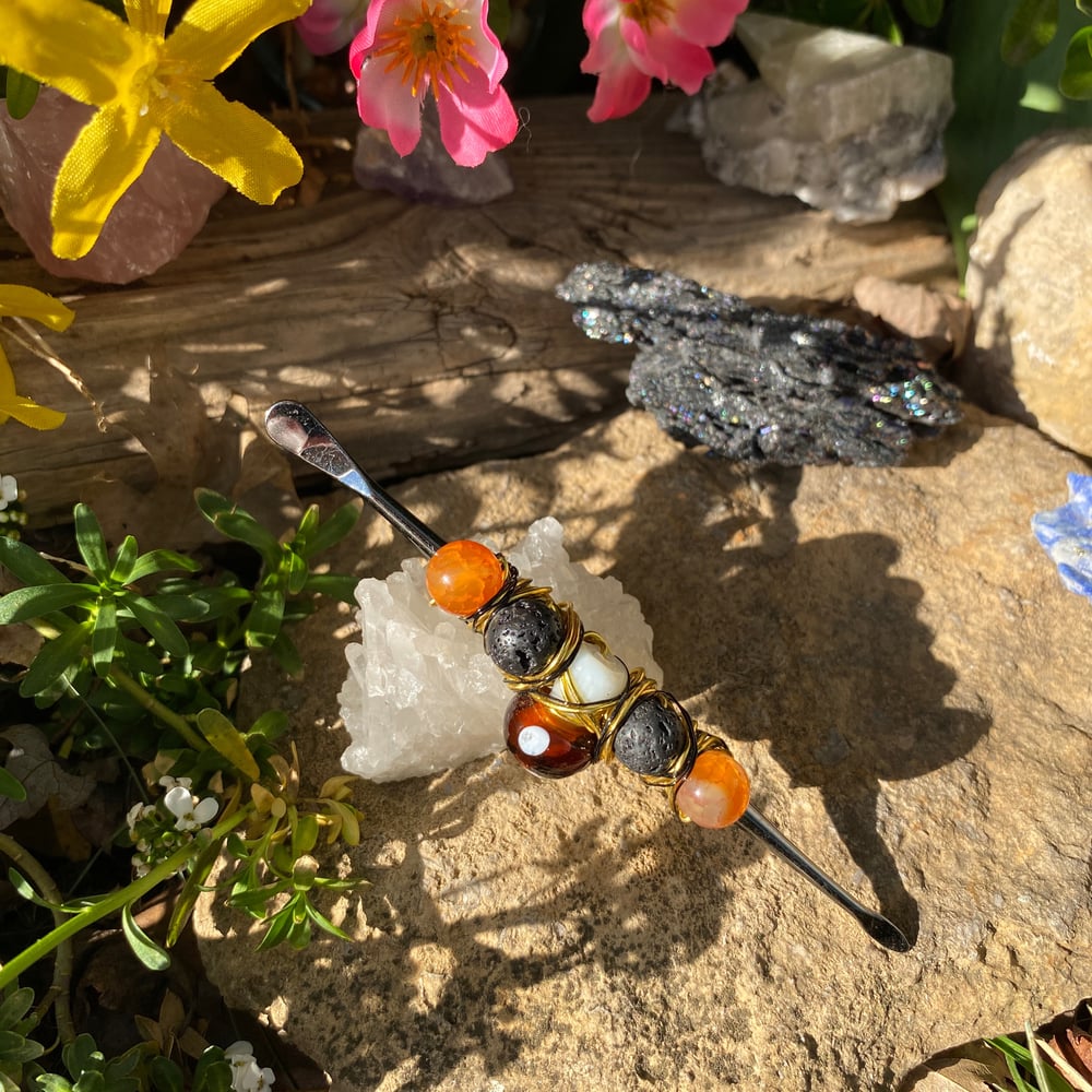 this dab tool is wrapped in gold wire, detailed with thin black wire and a mushroom bead 🍄