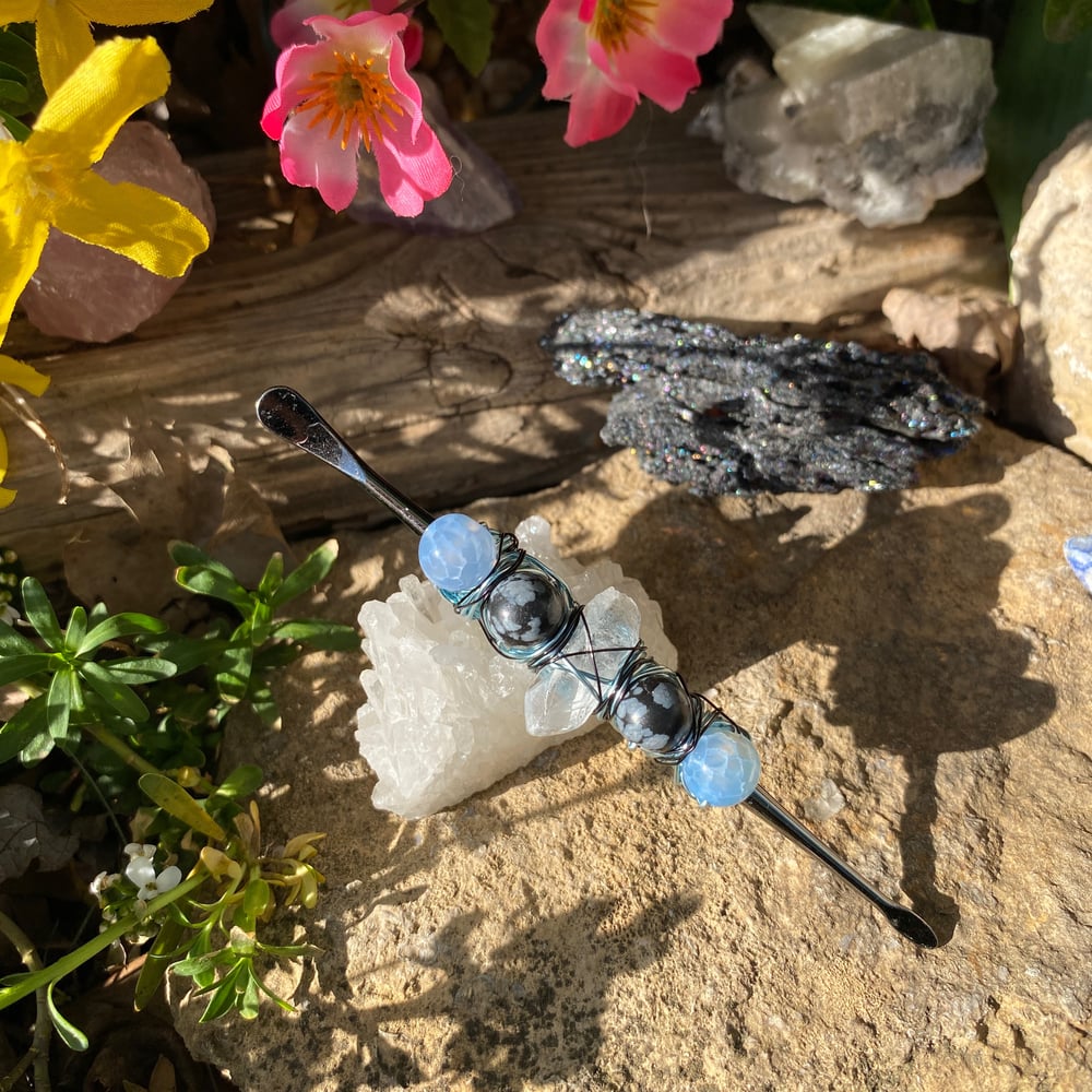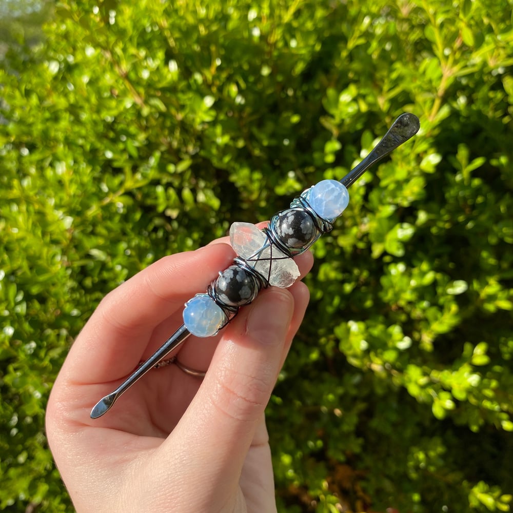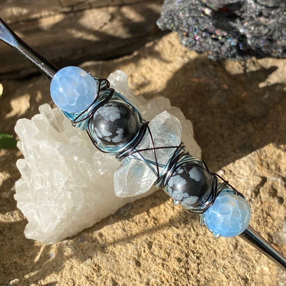 this dab tool is wrapped in blue wire, detailed with thin black wire and a crystal bead 💙