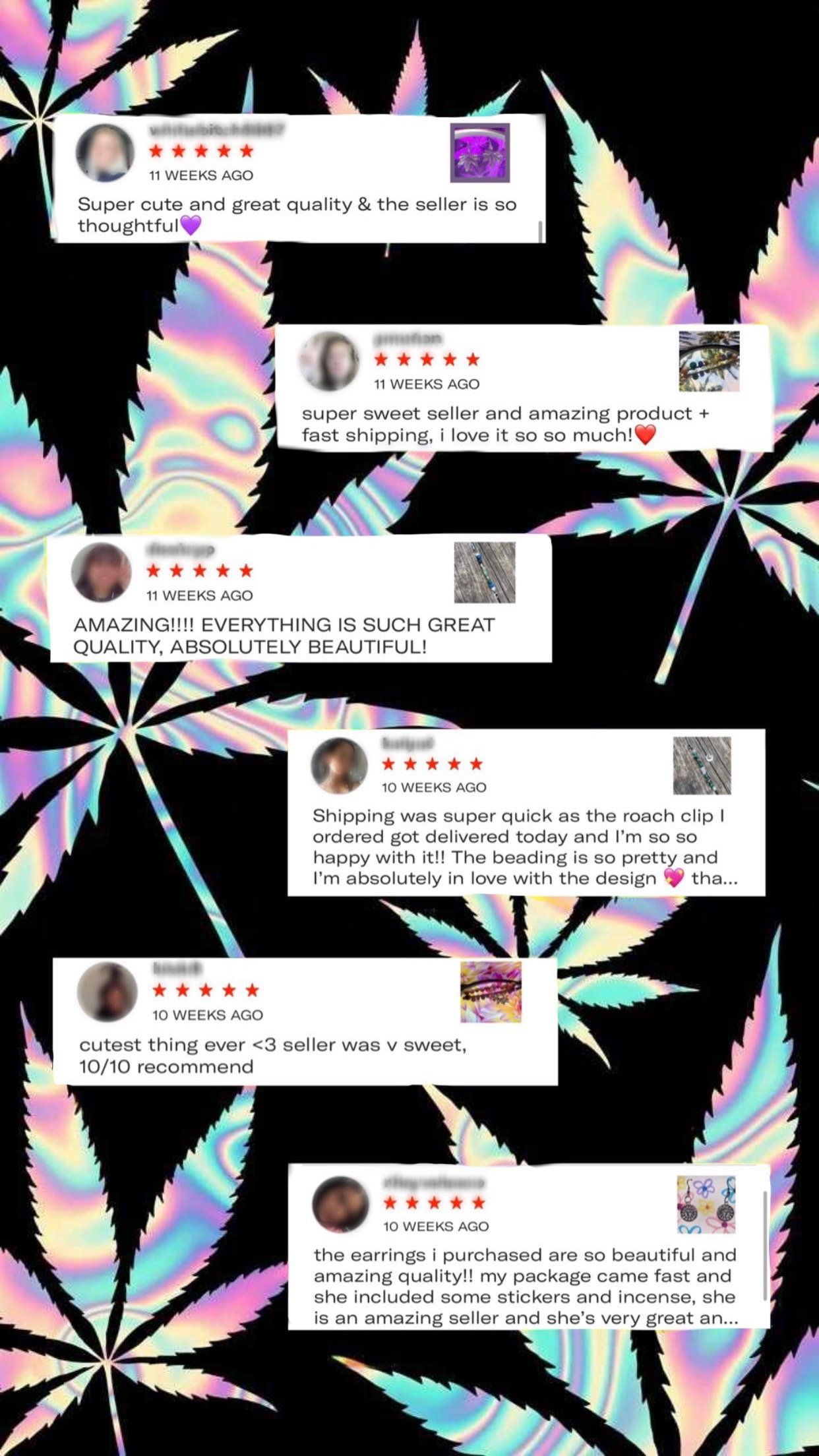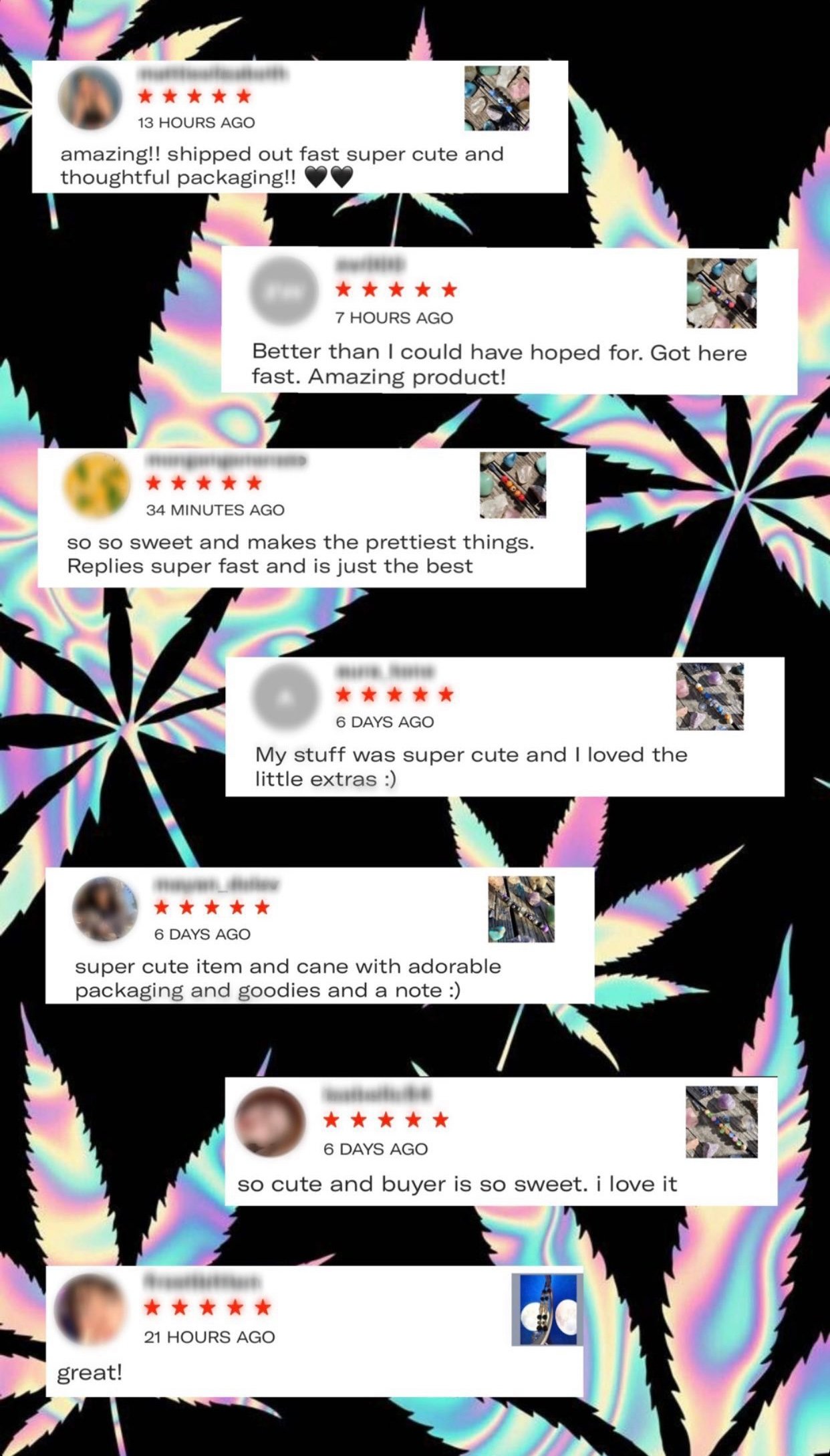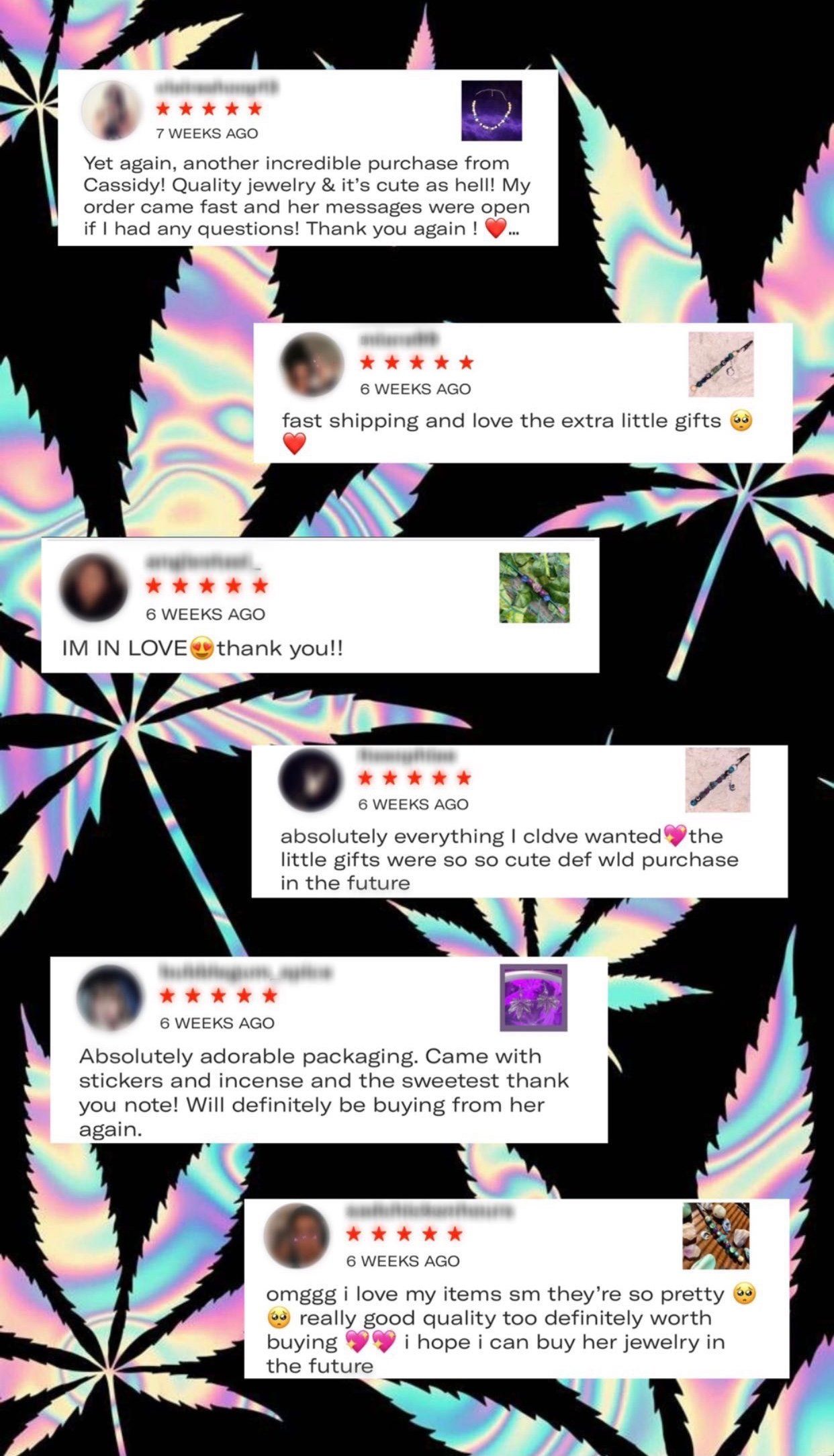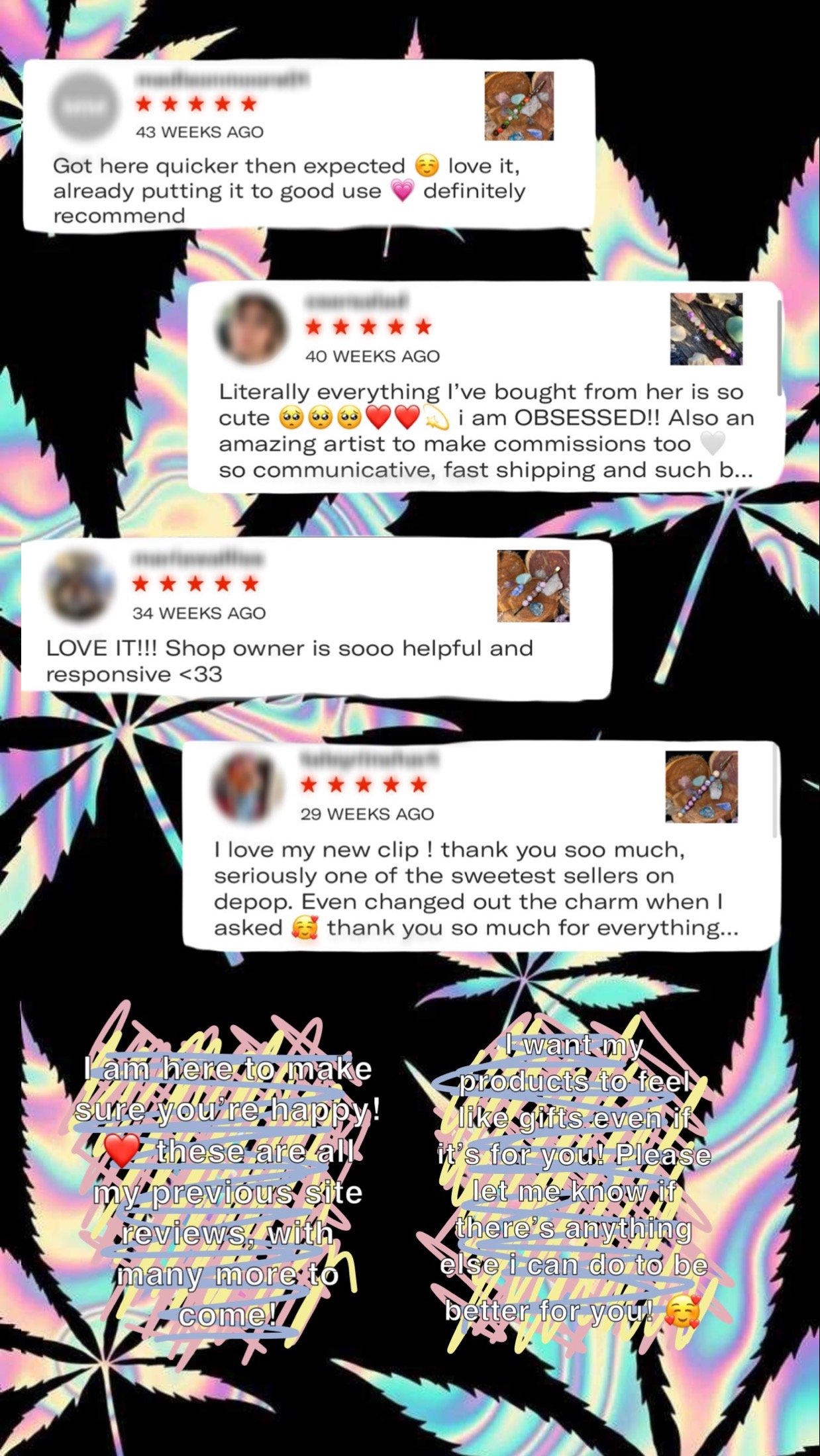 Every order is packaged with love, and it shows! These reviews from my past Depop shop show that customer satisfaction is the ultimate priority, and the order will be just as rewarding for you as it is for me! Please reach out through Instagram DM or email if theres any questions/concerns! <3