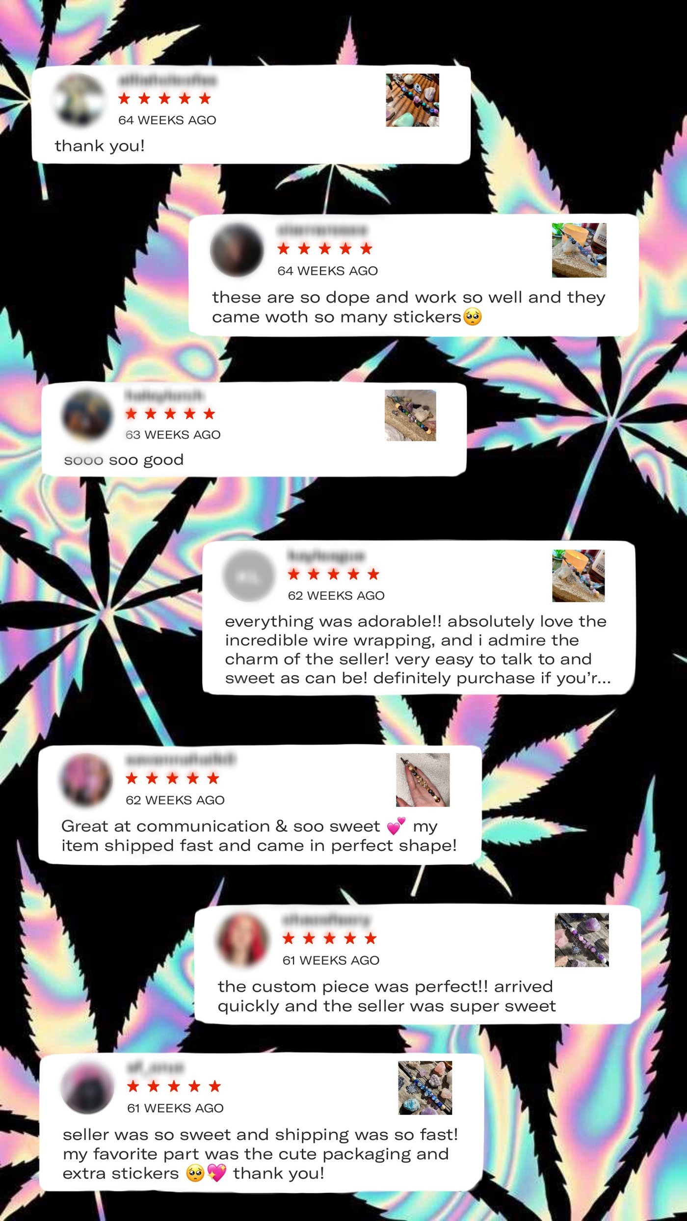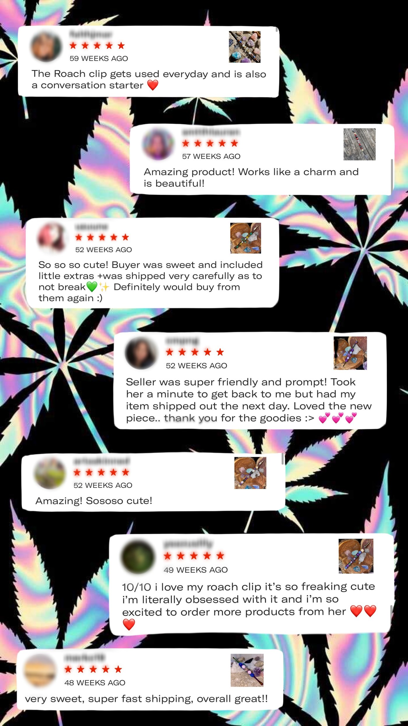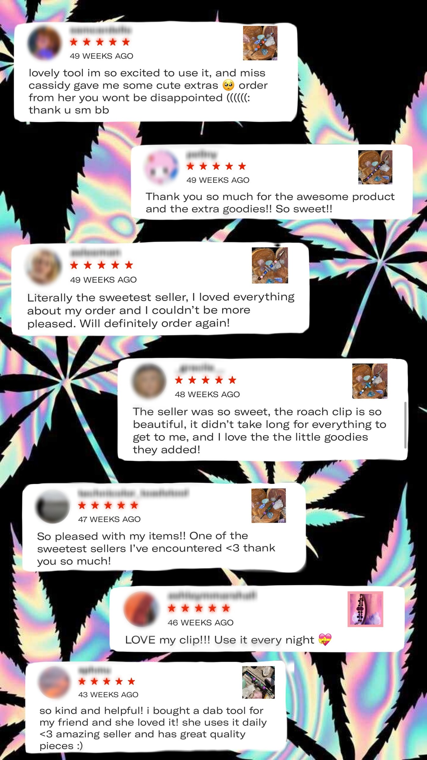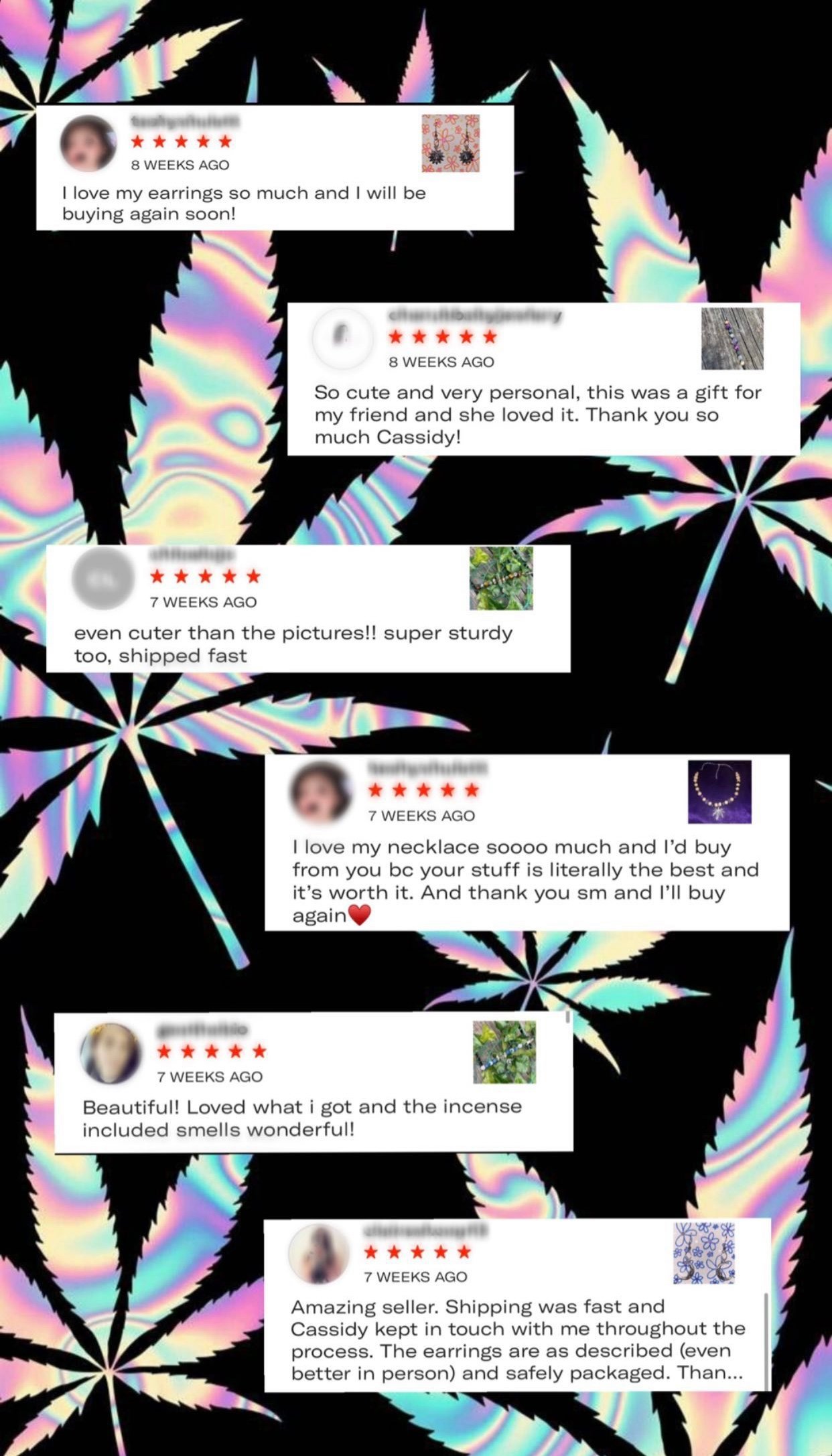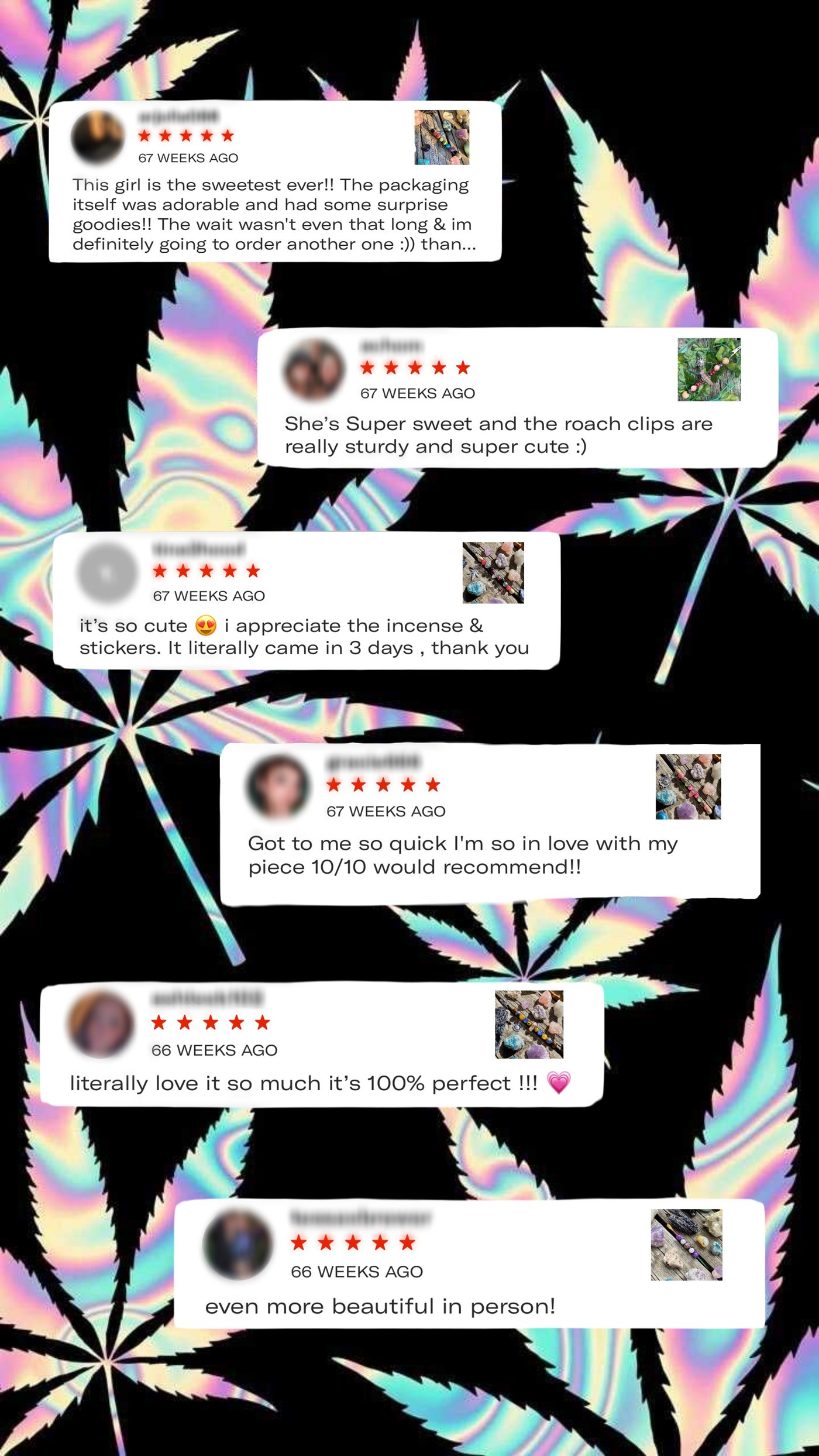 Every order is packaged with love, and it shows! These reviews from my past Depop shop show that customer satisfaction is the ultimate priority, and the order will be just as rewarding for you as it is for me! Please reach out through Instagram DM or email if theres any questions/concerns! <3